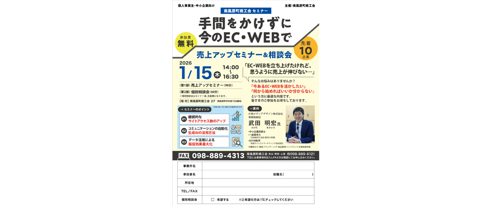 2025.11.25【告知】2026/1/15(木)南風原町商工会様「売上アップセミナー&相談会」